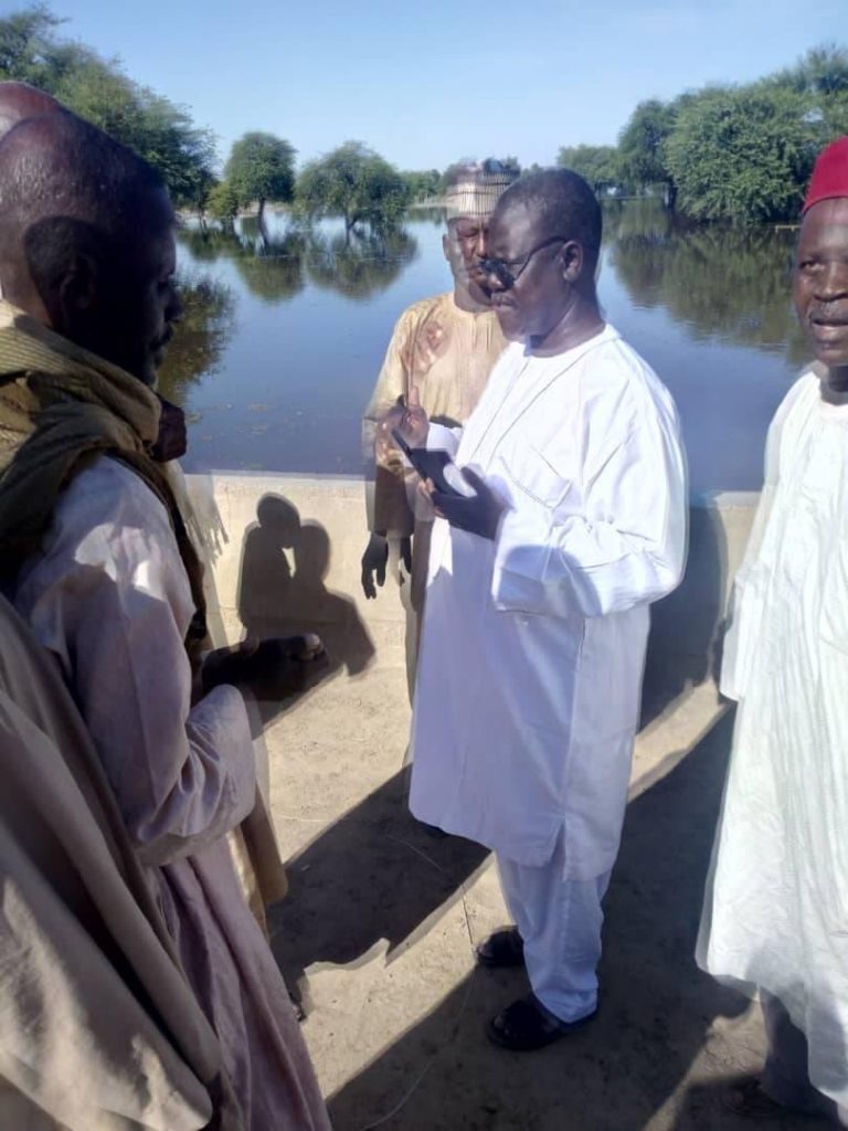 Ci-haut, les images des autorités administratives et locales De l’arrondissement de makary sur le lieu d’inondations.